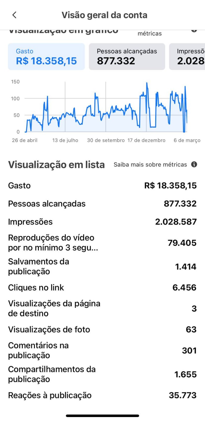 Já investir mais $50.000,00 em anúncios online para os meus contratantes nesse 3 anos de serviços prestado.